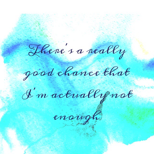 I actually am not enough. For me the issue is being okay with that. As a Christian I know this to be true. The fact that I am not whatever enough is exactly why I rely on Jesus. He is my sufficiency. It’s why I need the Holy Spirit to guide and direct and teach and comfort – and He does all of those things.